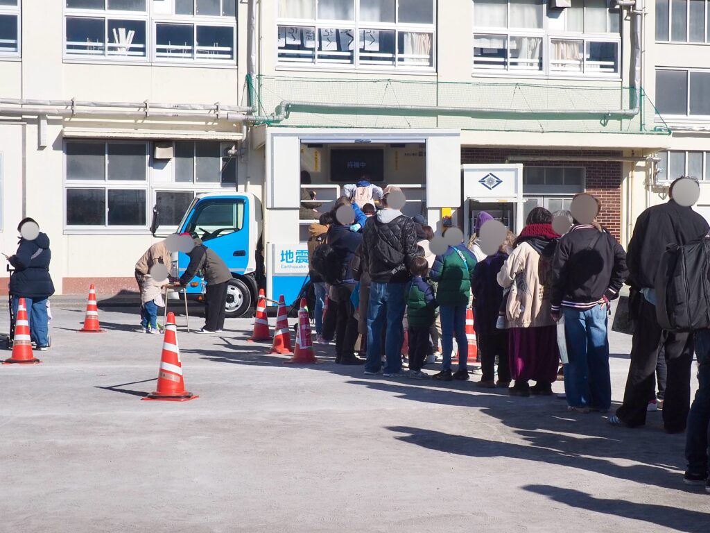 地震体験車はとても人気で、1時間ほどで受付終了。