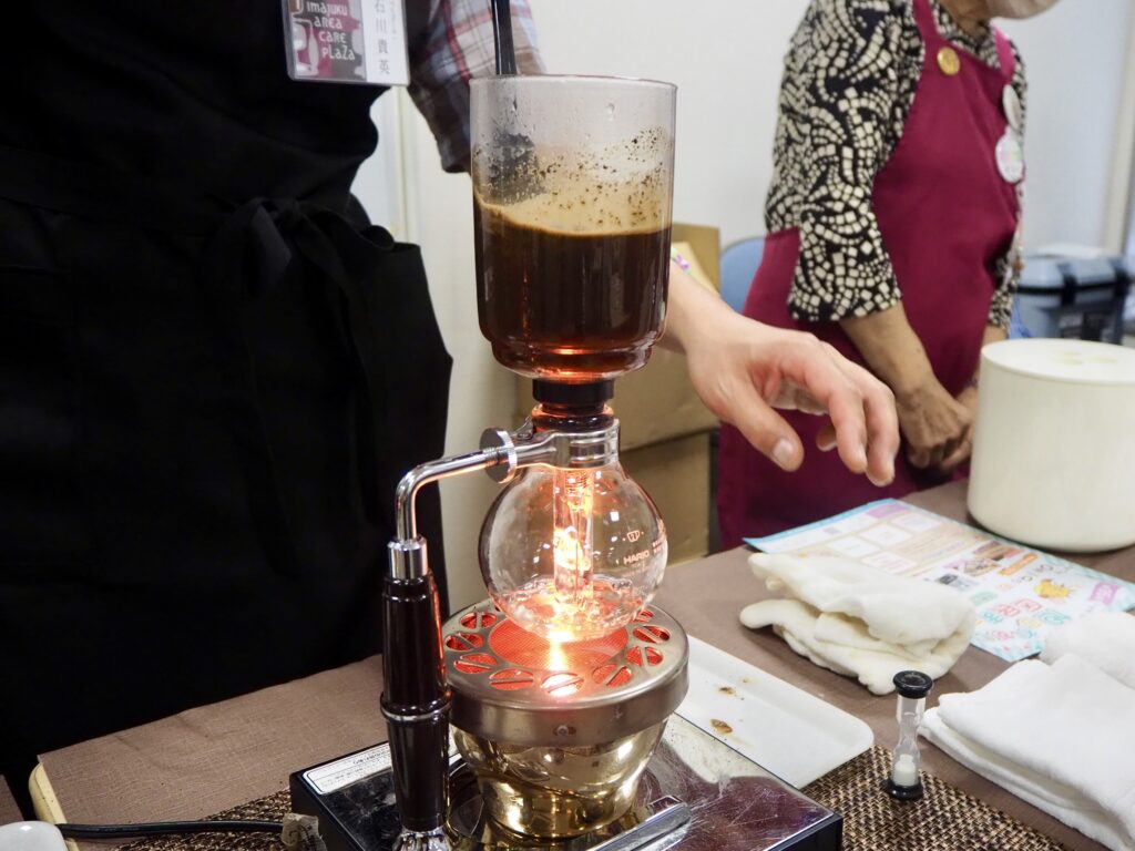 ボランティアの方々がていねいにお湯を注ぎ、ガラス越しにふわっと広がる香り。