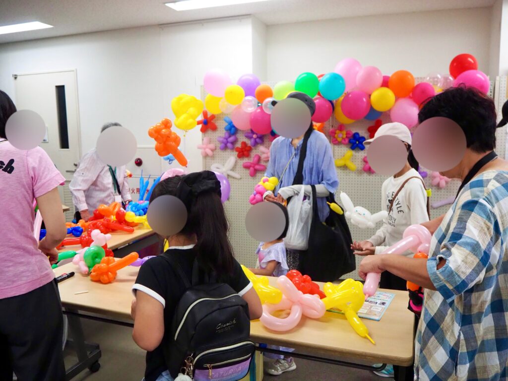 みなくるのロビーでは、子どもたちが列を作って並んでいたのがバルーンアートコーナー。