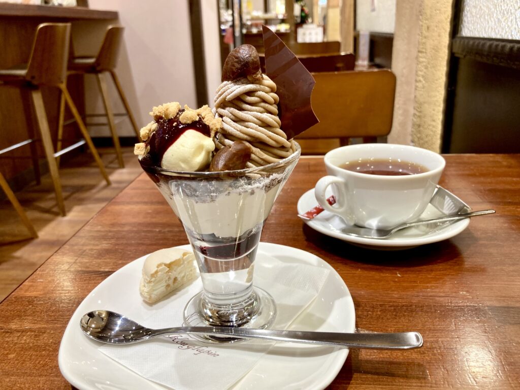 パティスリークグラパンの「利平栗のマロンパフェ」は季節限定メニュー。