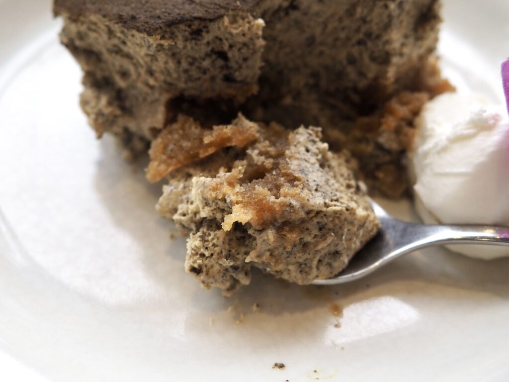 スポンジにほうじ茶が染み染み!スプーンですくうたびにじゅわ〜と溢れます。