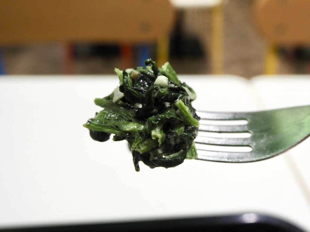 ほうれん草はニンニクが効いていて食欲をそそります!