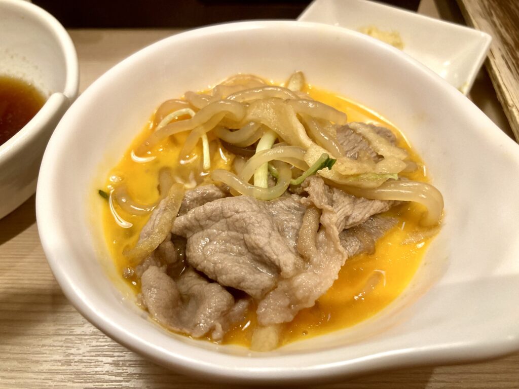 今回はすき焼き風に。生卵が無料でついてくるのがうれしいポイント。