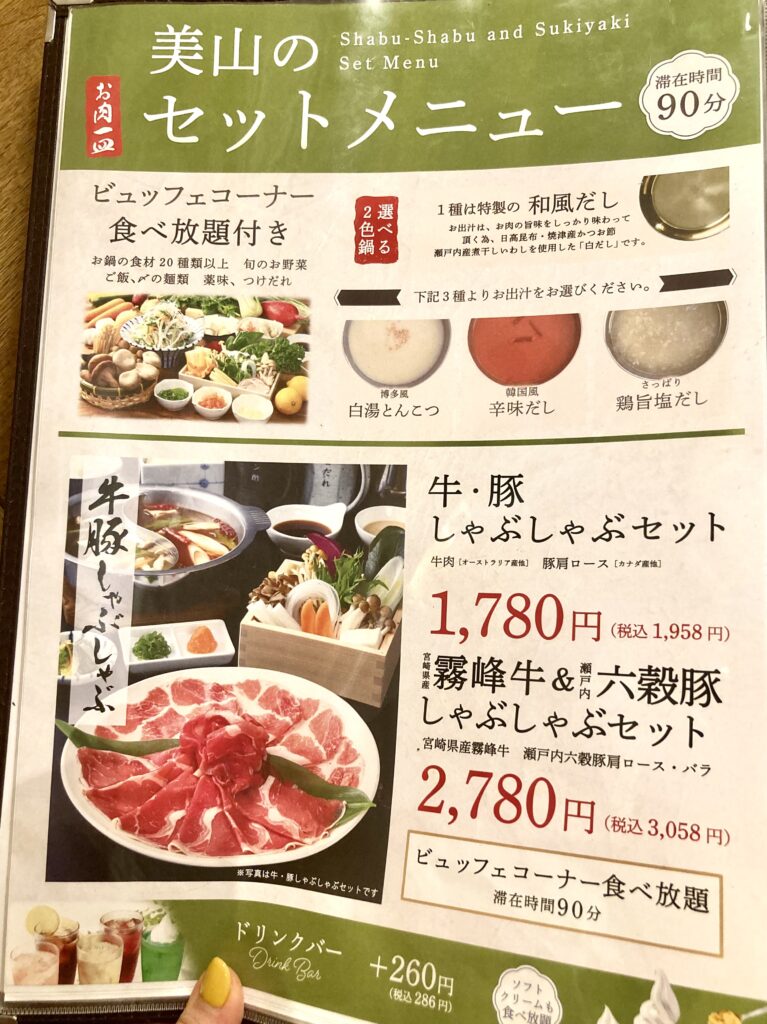 「しゃぶしゃぶ肉処 美山」のメニュー(二俣川店)
