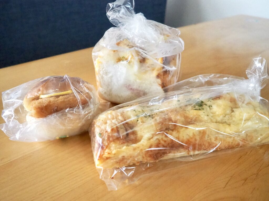 Threadsのフォロワーさんに教えていただいた「オニオンブレッド」「玄米チーズパン」、あと口コミを見て気になった「フィッシュサンド」をゲットしました!